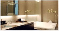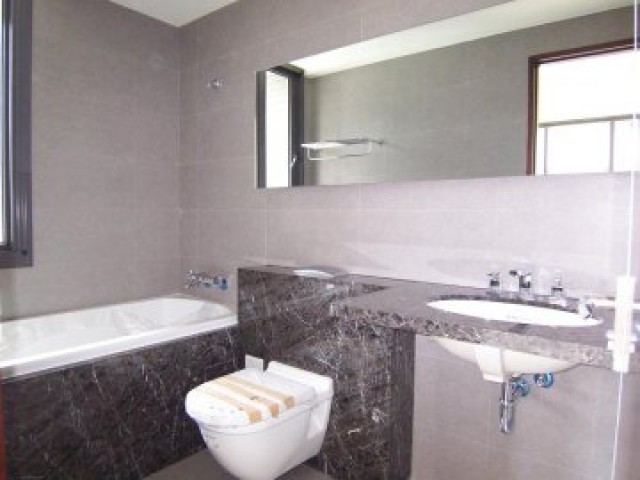 建築迎光面以大片的玻璃通透採光,輕量化的建築語彙,搭配金屬元件、石材簡約俐落,在清靈的水氛圍之中,顯得舒適而輕盈。